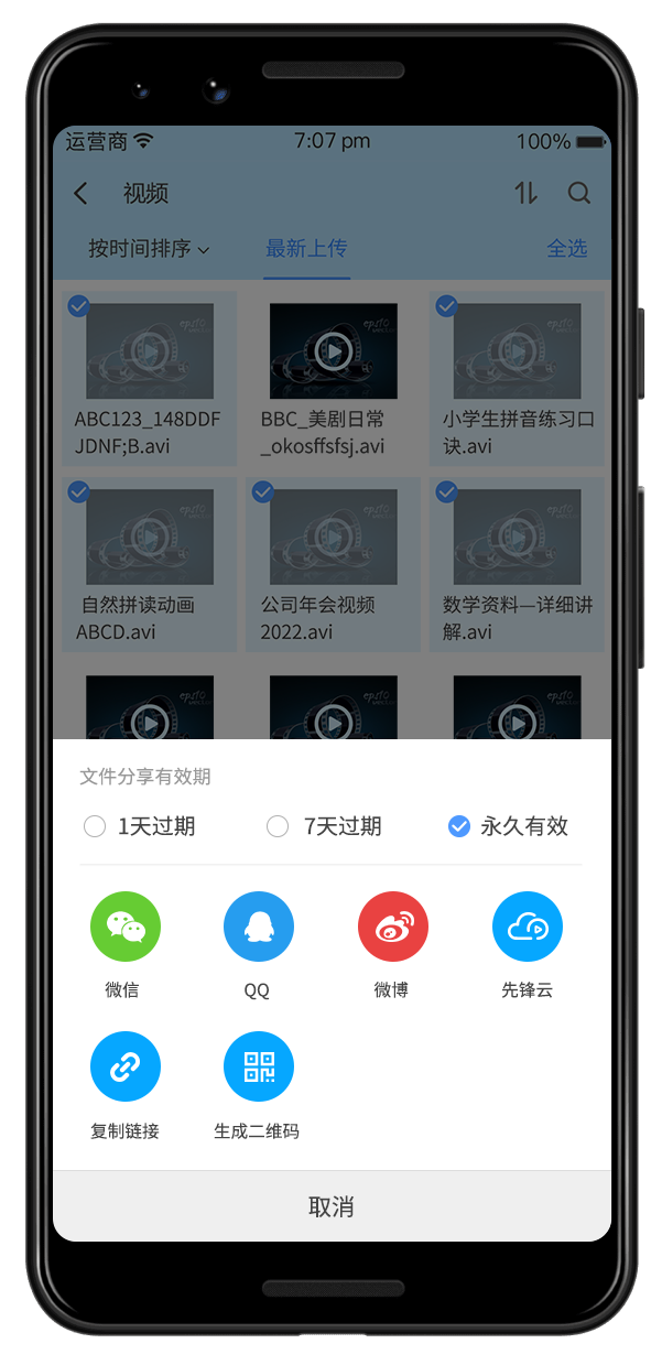 先锋云盘是零与壹软件继“影音先锋”后又一倾力为用户精心打造的私密云存储产品,您可将重要的内容,如视频、图片、音乐、文档一键备份到云端;采用加密技术保护隐私,文件传输和储存既安全又可靠;多端数据同步,资料能够随时随地携带,您可以即时查看和管理云盘内的私密点滴。